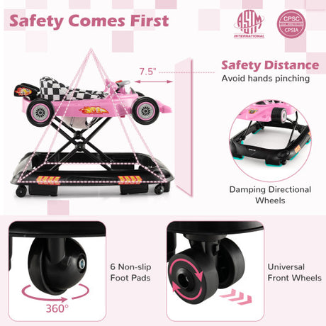 Convertible Baby Walker with 3 Adjustable Height Settings-Pink
