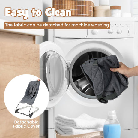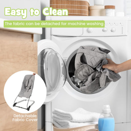 Foldable Baby Bouncer with Removable Fabric Cover and Toy Bar-Gray