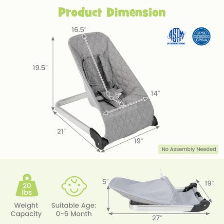 Baby Bouncer Seat with Aluminum and Metal Frame-Gray