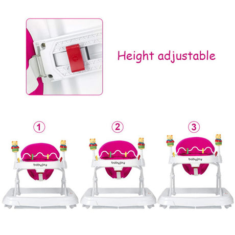 Adjustable Height Removable Folding Portable Baby Walker-Pink