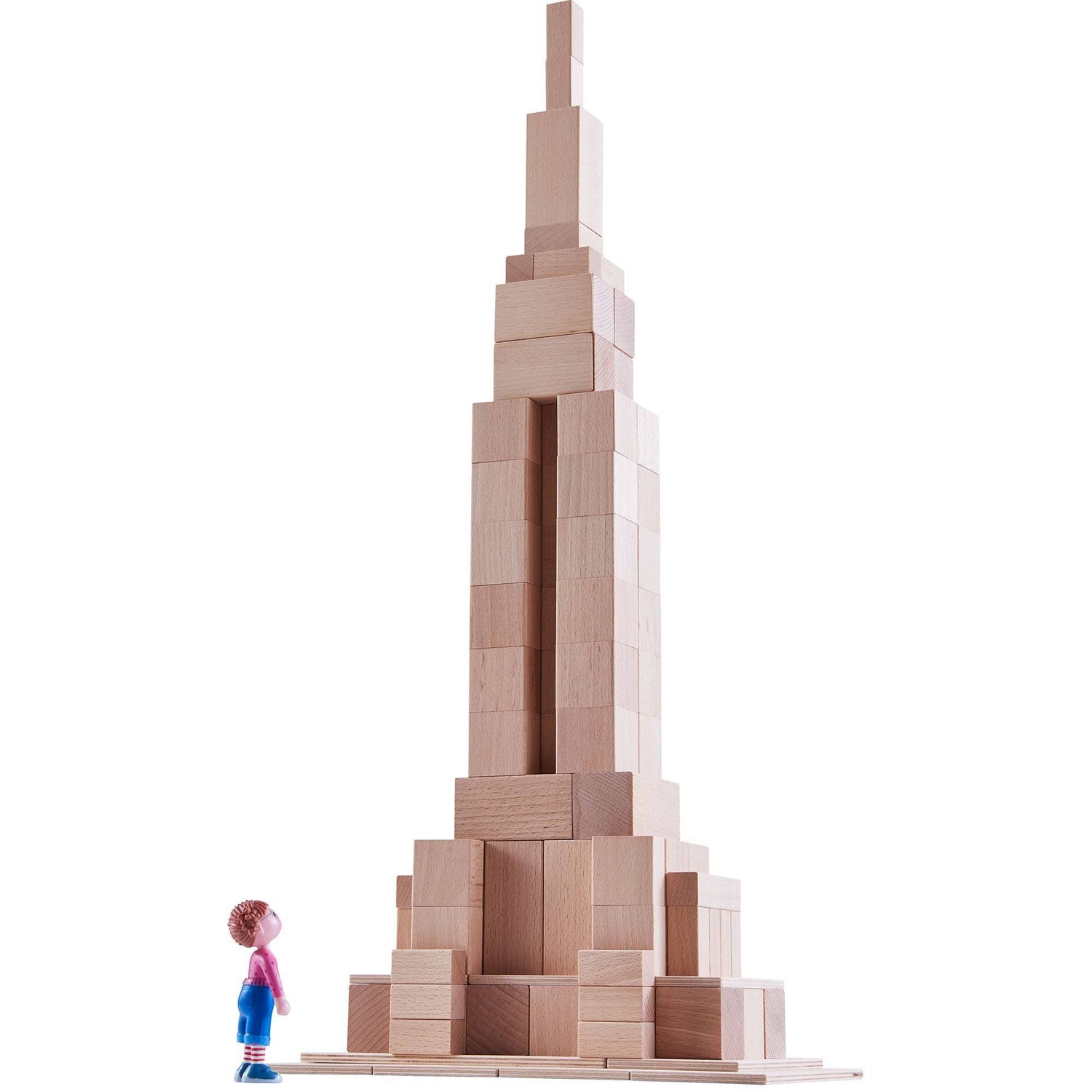 Welcome to HABA’s Clever Up! Building System—a world of endless possibilities. With a mix of cubes, rectangular blocks, panels, strips, balls, and triangular prisms, your child can design and construct creations that are as imaginative as they are educational. Build bridges, create inclines, and discover how shapes interact. The Clever Up! system even introduces simple digital thinking concepts, opening the door to a universe of learning and play.