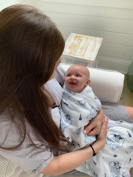 Gift Set: Southern Gentleman Baby Muslin Swaddle Blanket and Burp Cloth/Bib Combo by Little Hometown