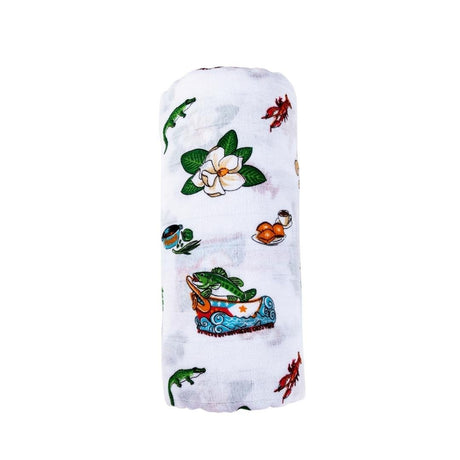 Sale price $36.90 Regular price $36.99Unit price /Unavailable Gift Set: Louisiana Baby Muslin Swaddle Blanket and Burp Cloth/Bib Combo by Little Hometown