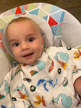 Sale price $36.90 Regular price $36.99Unit price /Unavailable Gift Set: Michigan Baby Muslin Swaddle Blanket and Burp Cloth/Bib Combo by Little Hometown