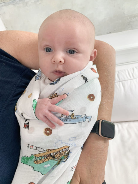 Gift Set: North Carolina Baby Muslin Swaddle Blanket and Burp Cloth/Bib Combo by Little Hometown