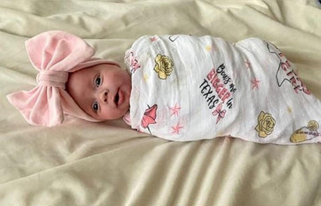 Sale price $36.90 Regular price $36.99Unit price /UnavailableIn stockGift Set: Texas Baby Girl Muslin Swaddle Blanket and Burp Cloth/Bib Combo by Little Hometown