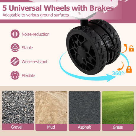 Large Foldable Utility Cart with 2-Tier Storage Crates and Telescoping Handle-Pink