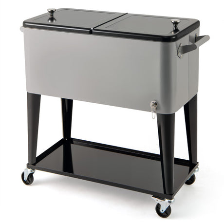 Portable Patio Cooler with Bottom Storage Shelf and Bottle Opener-Gray