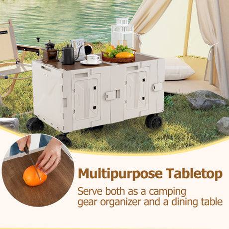Large Foldable Utility Cart with 2-Tier Storage Crates and Telescoping Handle-White