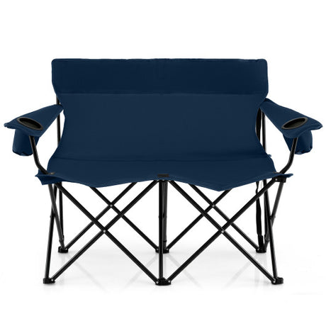 Double Camping Chair 2-Person Outdoor Folding Loveseat with Cup Holders-Blue