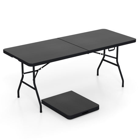 Patio Folding Camping Table with Roll-up Tabletop and Mesh Basket-Black