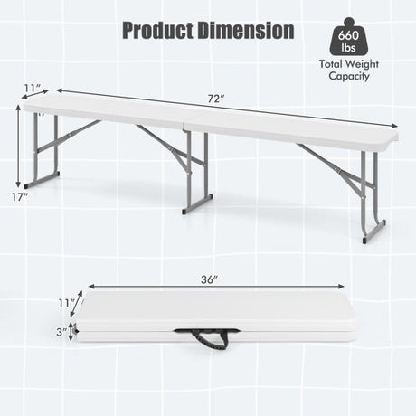 6 Feet Plastic Folding Bench Picnic Camping Dining Seat with Carrying Handle-White