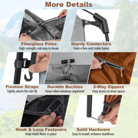 2 Rooms Oversize Privacy Shower Tent with Removable Rain Fly and Inside Pocket-Brown