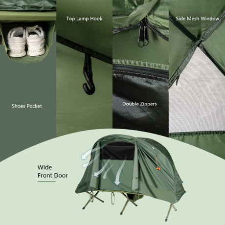 2-Person Camping Cot Tent Foldable Off-Ground Camping Combo for Adults-Green