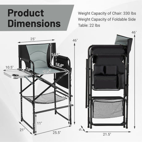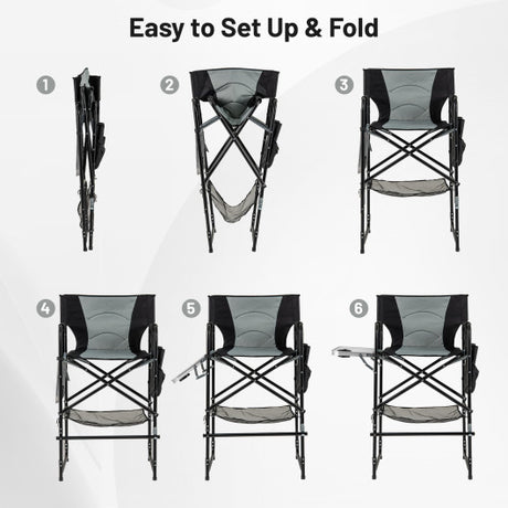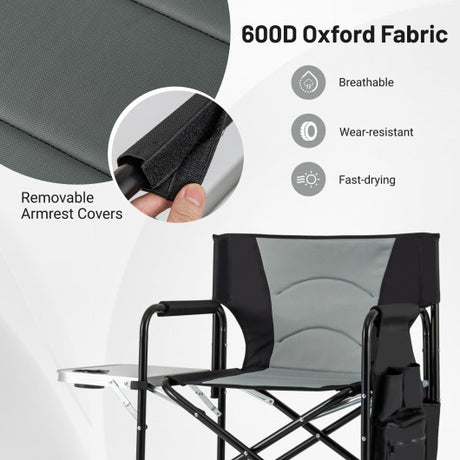 46 Inches Tall Directors Chair with Foldable Side Table and Footrest-Gray