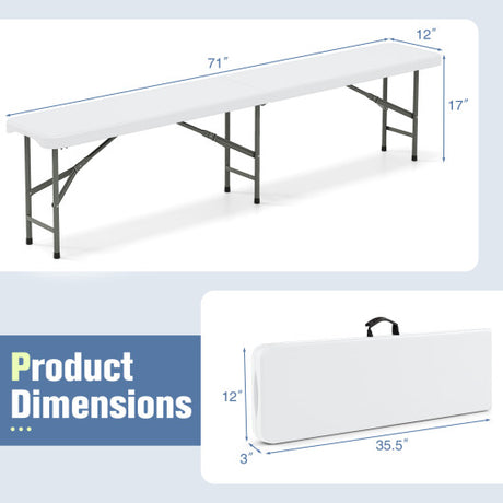 6 Feet Plastic Folding Bench Portable Seat with Handle and Lock-White