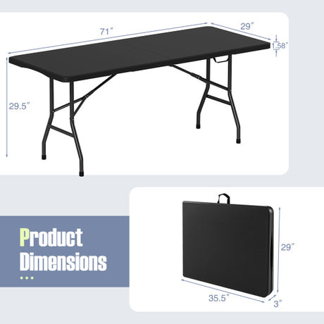 6 ft Portable Folding Table 350 LBS Fold-in-Half Table with HDPE Tabletop-Black