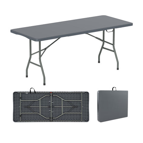 6 ft Portable Folding Table 350 LBS Fold-in-Half Table with HDPE Tabletop-Gray