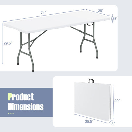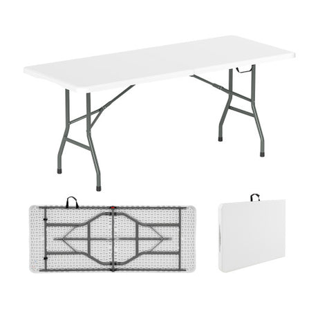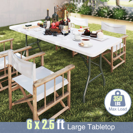 6 ft Portable Folding Table 350 LBS Fold-in-Half Table with HDPE Tabletop-White