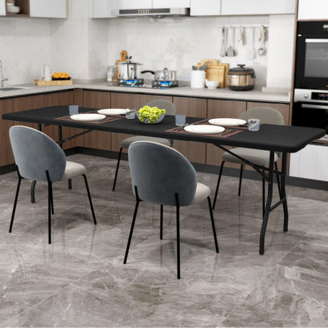 8 ft Portable Folding Table 350 LBS Fold-in-Half Table with HDPE Tabletop-Black