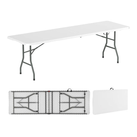 8 ft Portable Folding Table 350 LBS Fold-in-Half Table with HDPE Tabletop-White