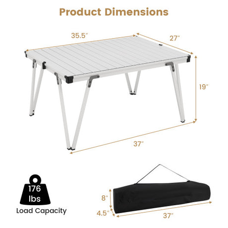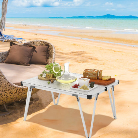 Folding Camping Table Picnic Table with Storage Bag and Waterproof Desktop-Silver