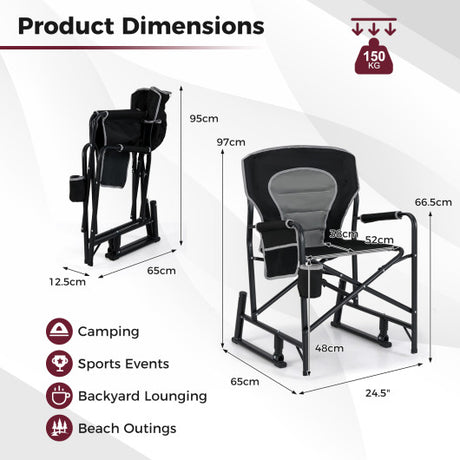 Outdoor Rocker Camping Chair with Dual Springs and Padded Back-Black