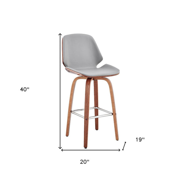 26" Gray And Brown Swivel Counter Height Bar Chair