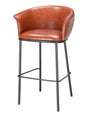 30" Brown And Black Faux Leather And Steel Bar Height Bar Chair