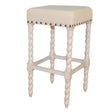 30" Cream And Vanilla Linen Upholstered Solid Wood Backless Bar Chair