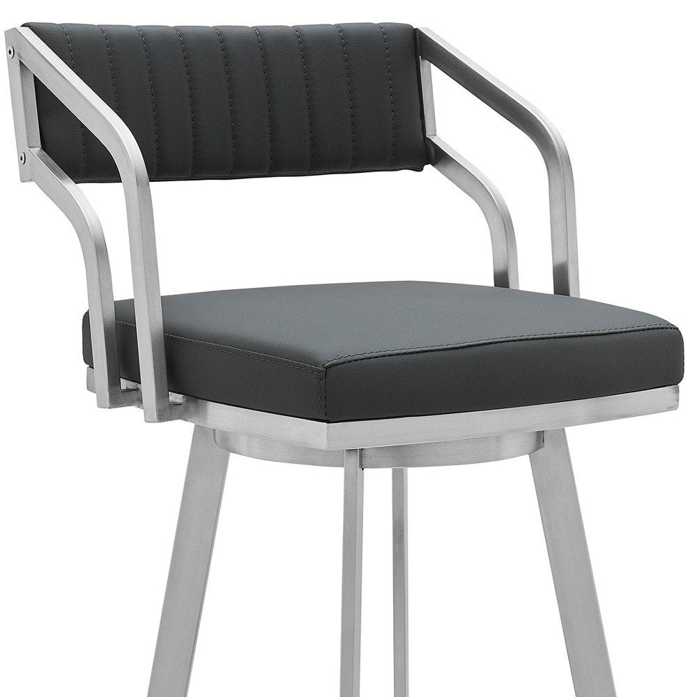 30" Gray And Silver Iron Swivel Low Back Bar Height Bar Chair