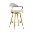 30" Silver and Gold Fabric and Stainless Steel Low Back Bar Height Swivel Bar Chair