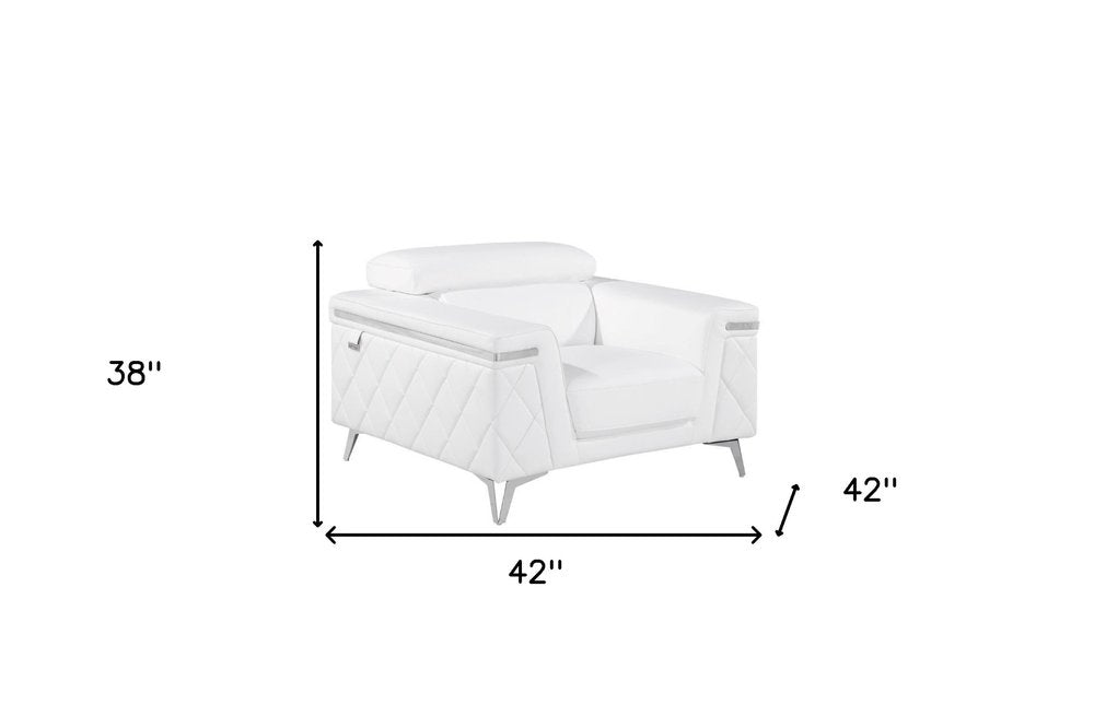 42" White And Silver Top Grain Leather Club Chair