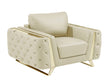 50" Beige And Gold Genuine Leather Tufted Club Chair - Beige is backordered and will ship as soon as it is back in stock.