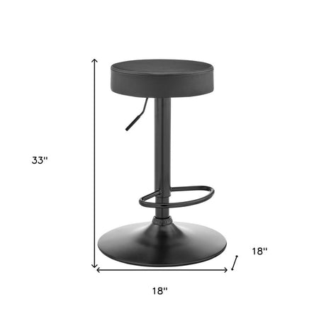 24" Gray And Black Faux Leather And Iron Swivel Low Back Adjustable Height Bar Chair