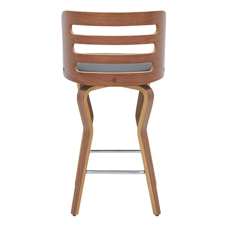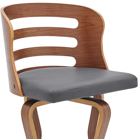 25" Gray and Brown Faux Leather Low Back Counter Height Swivel Bar Chair