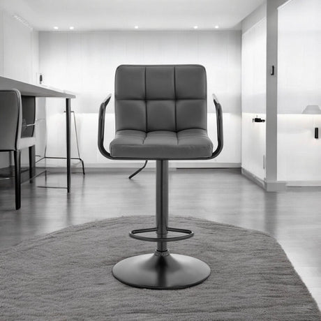 Regular price $204.66Unit price /UnavailableIn stock26" Gray And Black Faux Leather And Iron Swivel Counter Height Bar Chair