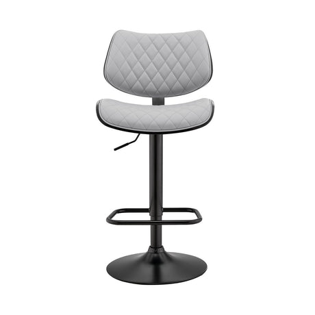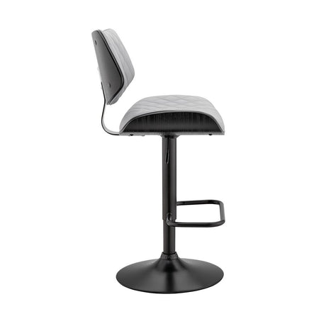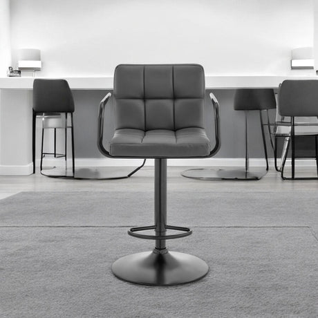 25" Gray And Black Faux Leather And Iron Swivel Low Back Adjustable Height Bar Chair
