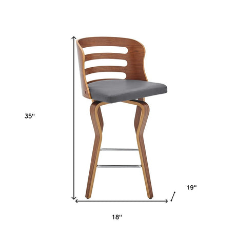 29" Gray And Brown Faux Leather Swivel Low Back Bar Height Bar Chair