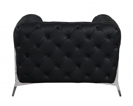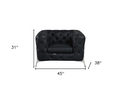 - HomeRoots - 45" Black And Silver Italian Leather Tufted Chesterfield Chair Regular price $2,061.89Unit price /Unavailable- 1 color available In stock