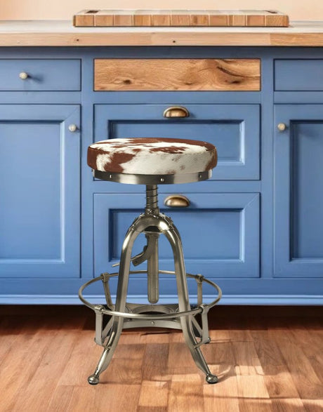 - Sold outHomeRoots Brown And White and Silver Iron Backless Swivel Bar Chair Regular price $545.94Unit price /Unavailable