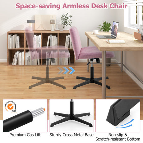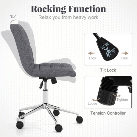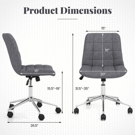 Armless Office Chair Upholstered Makeup Vanity Chair with Adjustable Height and Wheels-Grey