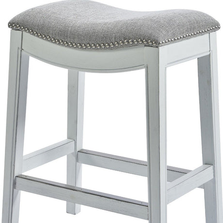 - HomeRoots - 26" Gray and White Solid Wood and Linen Blend Backless Counter Height Bar Chair Regular price $115.74Unit price /UnavailableIn stock