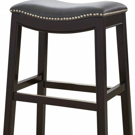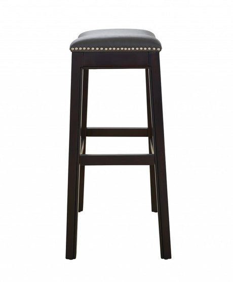 - HomeRoots - 31" Gray and Espresso Faux Leather and Solid Wood Backless Bar Height Bar Chair Regular price $118.58Unit price /UnavailableIn stock