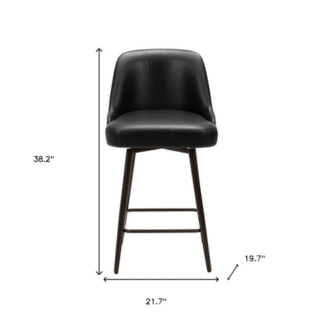 26" Black And Bronze Faux Leather And Steel Counter Height Swivel Bar Chair