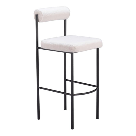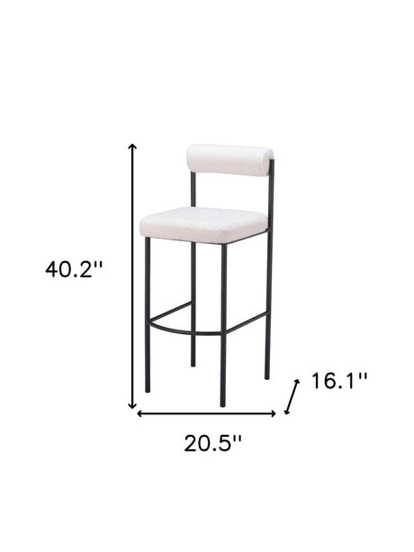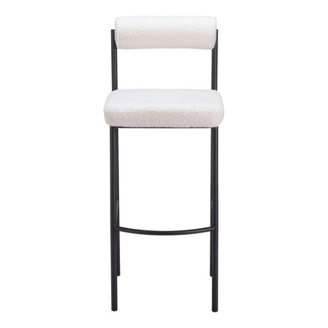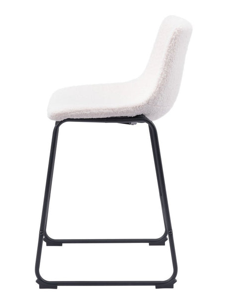 Set of Two 30" Ivory and Black Shearling and Steel Low Back Bar Height Bar Chairs