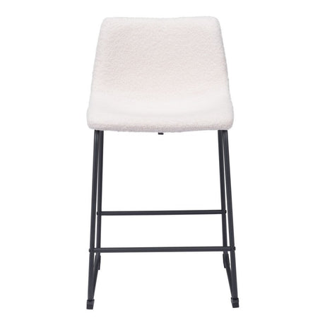 Set of Two 24" Ivory And Black Shearling And Steel Counter Height Bar Chairs