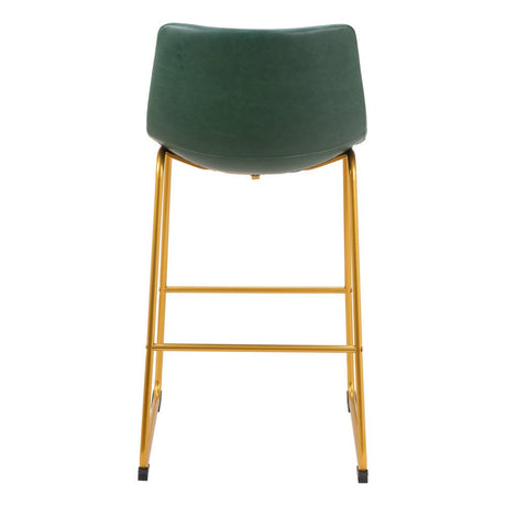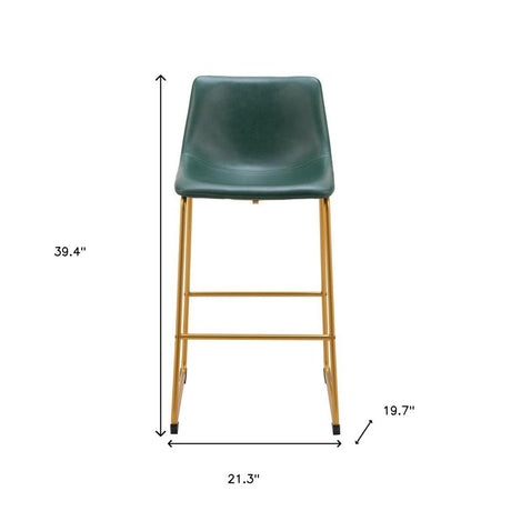 Set of Two 29" Green And Gold Faux Leather And Steel Bar Height Bar Chairs