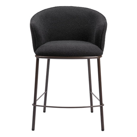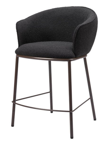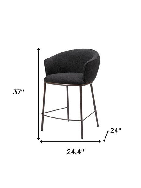 26" Black and Bronze Shearling and Steel Counter Height Bar Chair