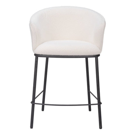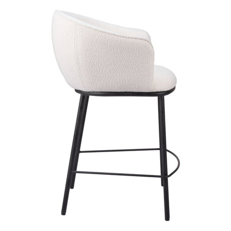 26" Ivory and Black Shearling and Steel Counter Height Bar Chair